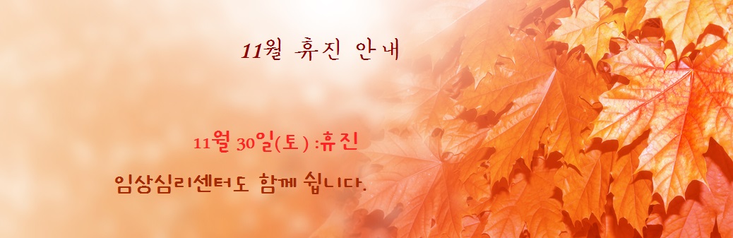 11¿ùÀº °ø½ÄÀûÀÎ ÈÞ¹«ÀÏÀº ¾ø½À´Ï´Ù¸¸, 11¿ù 30ÀÏ Åä¿äÀÏ ÇÏ·ç º´¿ø ÈÞÁøÀ» ÇÒ ¿¹Á¤ÀÔ´Ï´Ù.