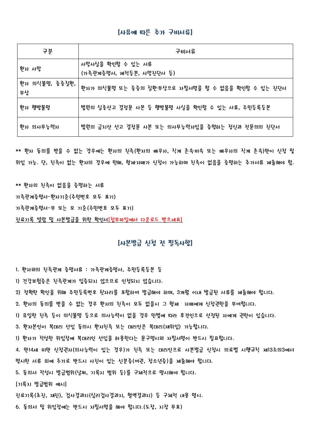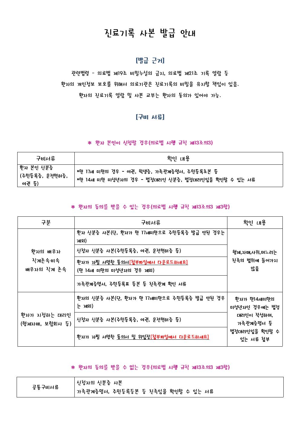 * 22³âºÎÅÍ °ü·Ã¹ý·É °³Á¤µÇ¾î, ȯÀÚÀÇ Ä£Á·ÀÌ È¯ÀÚÀÇ µ¿ÀǸ¦ ¾ò¾î Áø·á±â·Ï »çº»À» ¹ß±Þ¹ÞÀ» ¶§